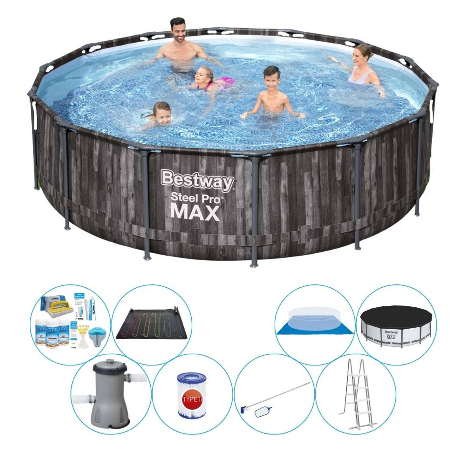 Bestway Steel Pro MAX Wood 427x107 cm - Zwembad Met Accessoires